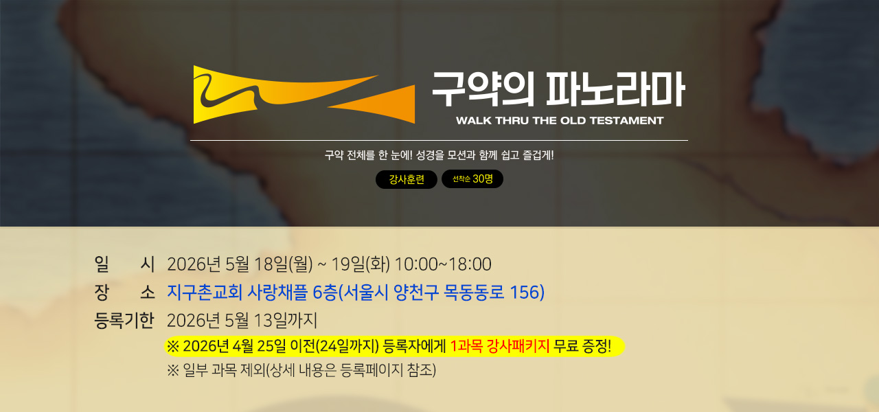 모두공지사항강사패키지학생용교재단행본공지사항, 세미나26.04.27_선파공지사항, 세미나26.04.20_성품공지사항, 세미나26.04.13_참믿음공지사항, 세미나26.04.06_생명력공지사항, 세미나778호 칼럼공지사항, 세미나26.03.30_기둥공지사항, 세미나2026 사역일정 상반기 미니 배너공지사항열매 맺는 삶공지사항사진 게시판공지사항인도자 지침서 PDF파일 제공 방법 변경공지사항, 세미나디모데 목회캘린더공지사항, 세미나, 칼럼오시는길