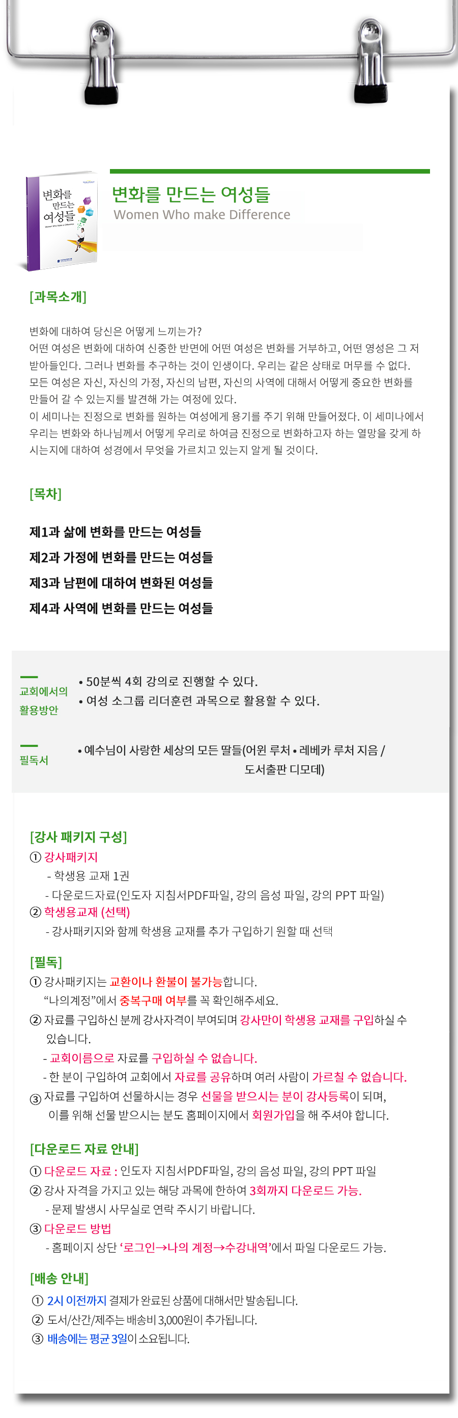 과목소개 글보기변화를 만드는 여성들 운영자 조회수 315 2019-06-13 09:24:54카테고리가정자기 자신을 비롯한 가족, 남편, 사역에 대해중요한 변화를 원하는 여성에게 용기를 주는<변화를 만드는 여성들>세미나를 소개합니다^^ - 디모데성경연구원 - 미리 보기■ 학생용 강의안■ 강의용 PPT 목록답변글쓰기 이전믿음의 테스트운영자2019-06-13-변화를 만드는 여성들운영자2019-06-13다음보이지 않는 전쟁운영자2019-06-13 Powered by MangBoard