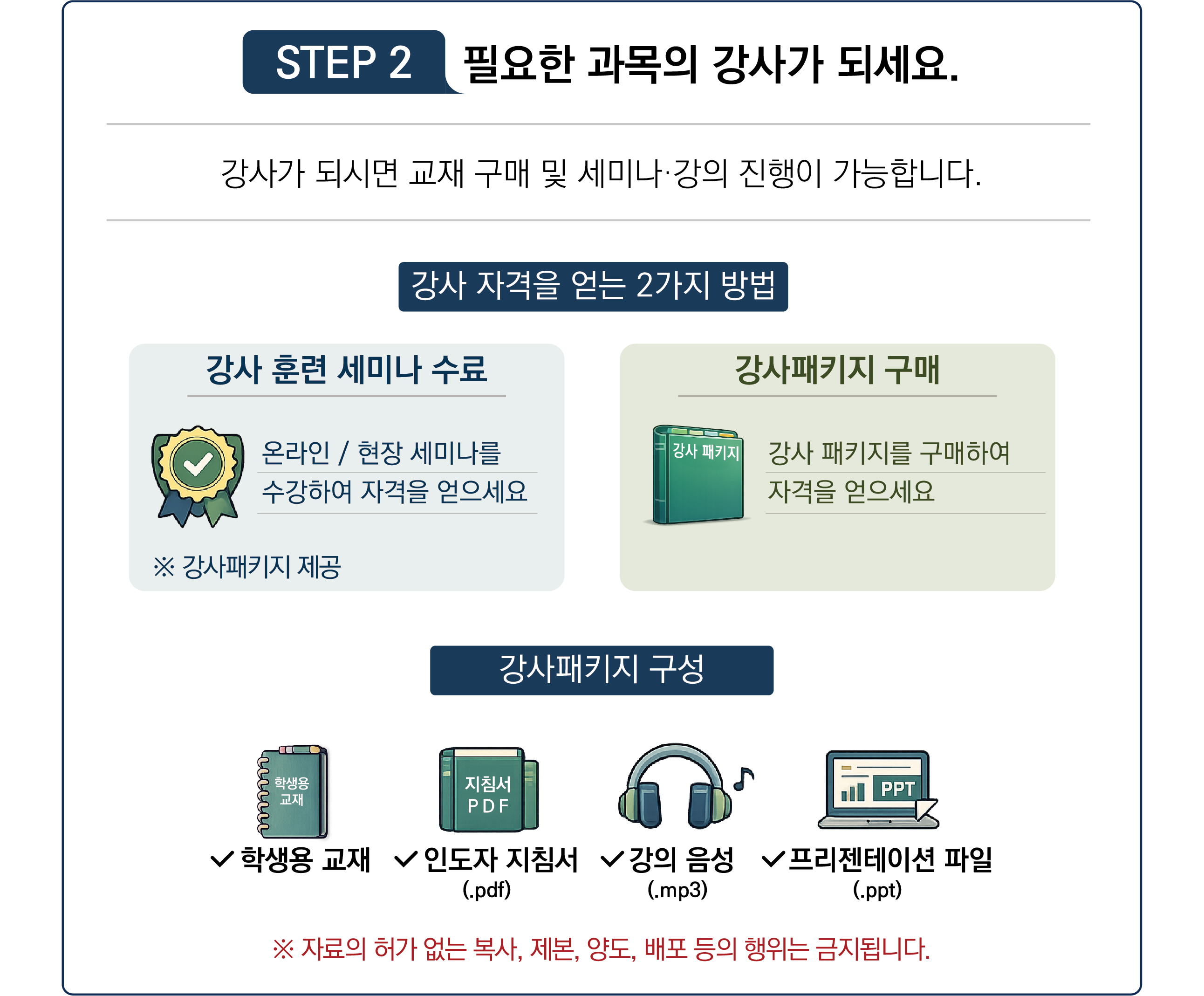 ① 해당 과목의 강사훈련 세미나(온라인, 현장)를 참여·수료하는 방법