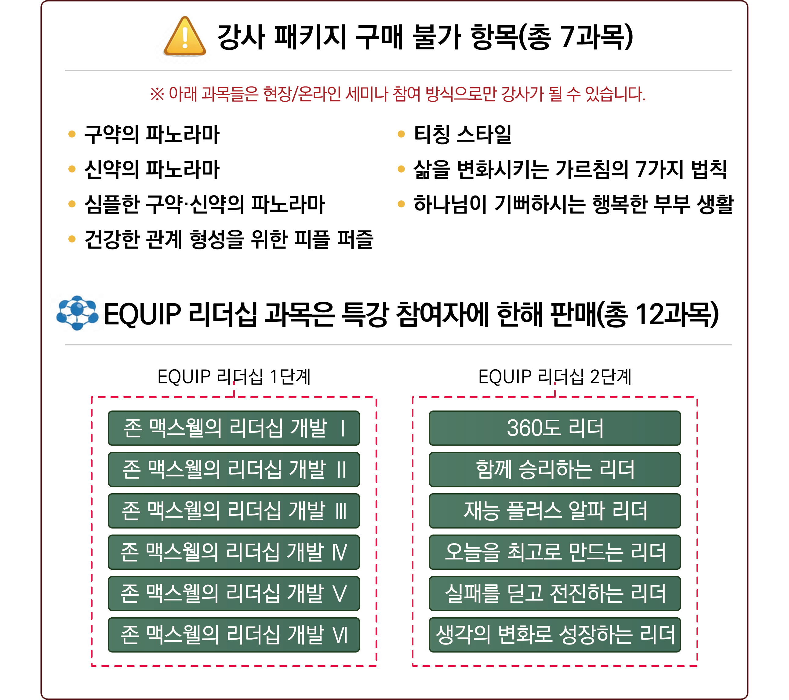 ※ EQUIP 리더십 과목은 특강 참여자에 한해 판매(총 12과목)