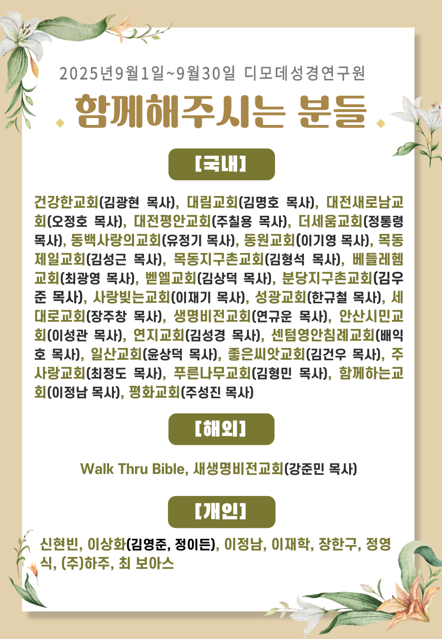 제목2025년 9월 디모데성경연구원과 함께해 주신 분들입니다.2025-10-02 10:35:41