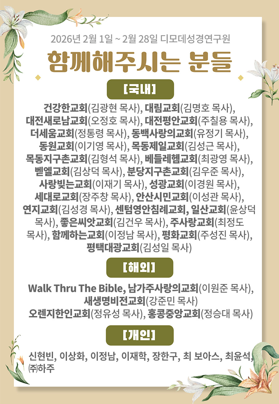 제목2026년 2월 디모데성경연구원과 함께해 주신 분들입니다.2026-03-11 17:14:27