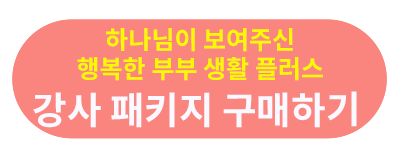 ② 하나님이 보여 주신 행복한 부부 생활 플러스 『하나님이 보여 주신 행복한 부부 생활』이 부부 관계에 대한 성경적 원론이라면, 『하나님이 보여 주신 행복한 부부 생활 플러스』는 보다 실제적인 내용을 다룹니다. "부부의 의사소통, 부부의 부모 공경, 부부의 가정 경제, 부부의 성"이 바로 그것입니다. 가정 사역의 중요성을 절감하며, 부부 목양의 깊이를 더하기를 원하시는 분들에게 아주 유용한 과목입니다. ▶ 하나님이 보여 주신 행복한 부부 생활 플러스 강사패키지 (정가) 80,000원 -> 48,000원(40% 할인) / 교재 (정가) 5,000원 -> 4,500원(10% 할인)